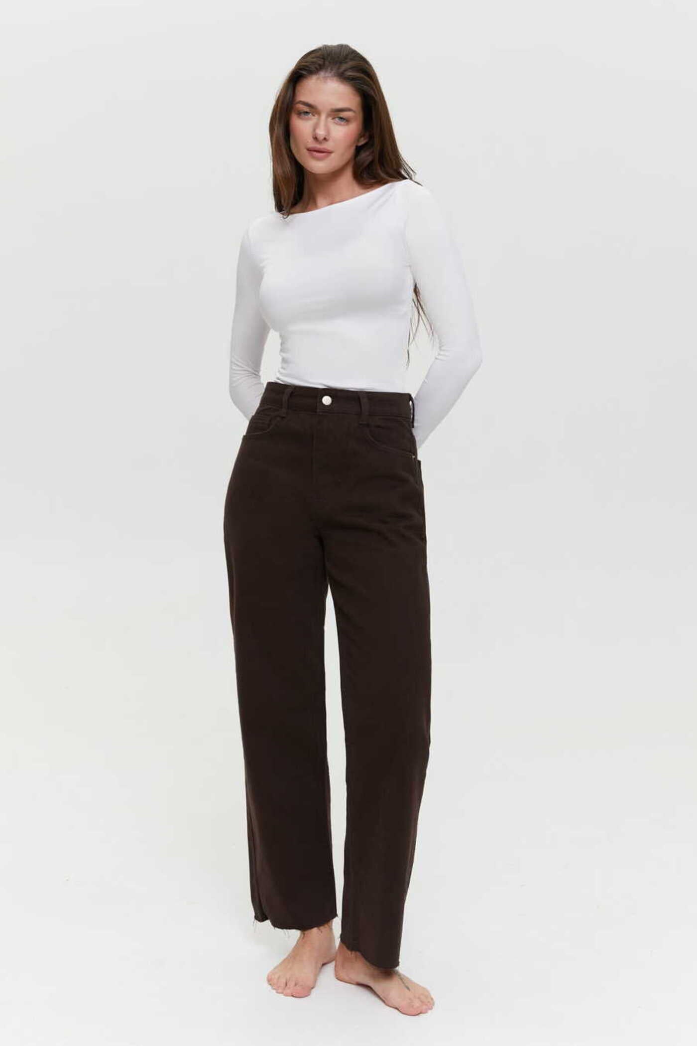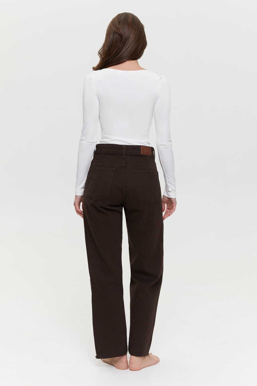 Straight-leg jeans in a rich chocolate hue are a fresh alternative to classic denim. Their versatile silhouette pairs effortlessly with shirts, long sleeves, and lightweight jumpers for an understated, polished look. The deep tone complements both neutral and bold colors, making them easy to style season after season. Wear them with loafers for a smart office outfit or with sneakers for relaxed off-duty days. The fit is comfortable without being tight and keeps its shape wear after wear.