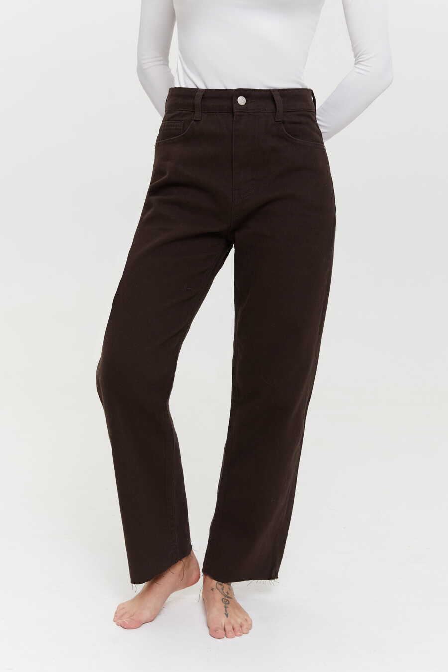 Raw hem STRAIGHT jeans, Chocolate