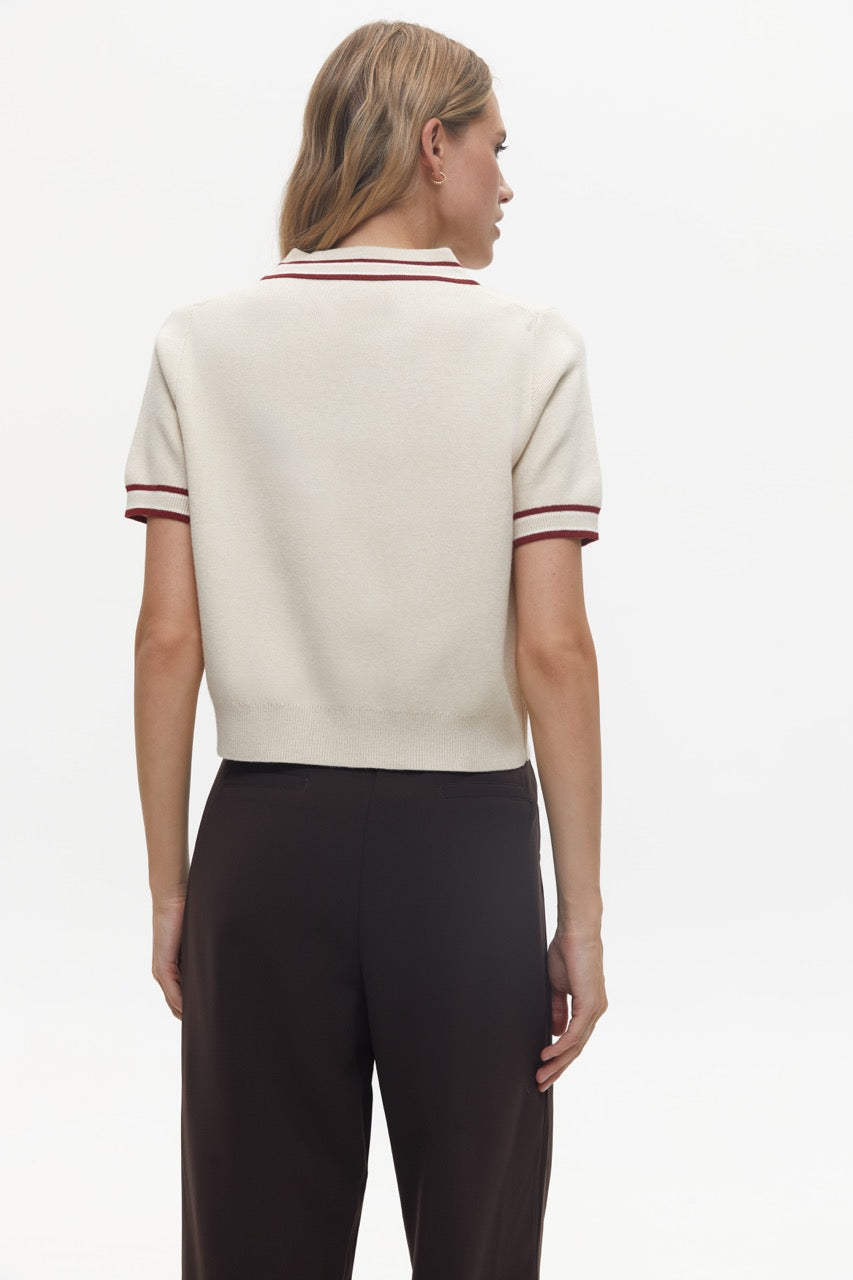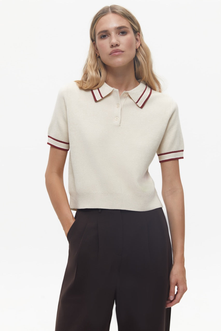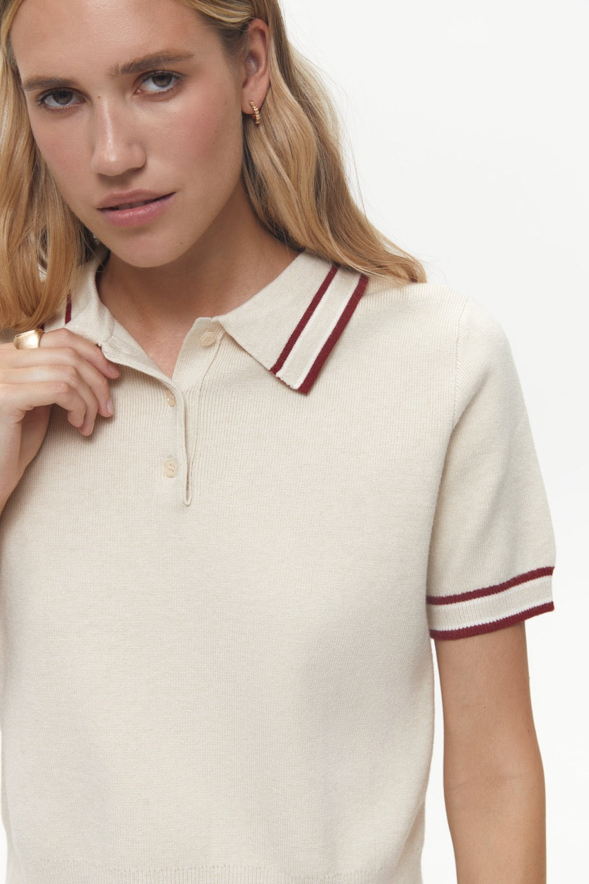 Oat Milk Polo Jumper with Accent Stripes