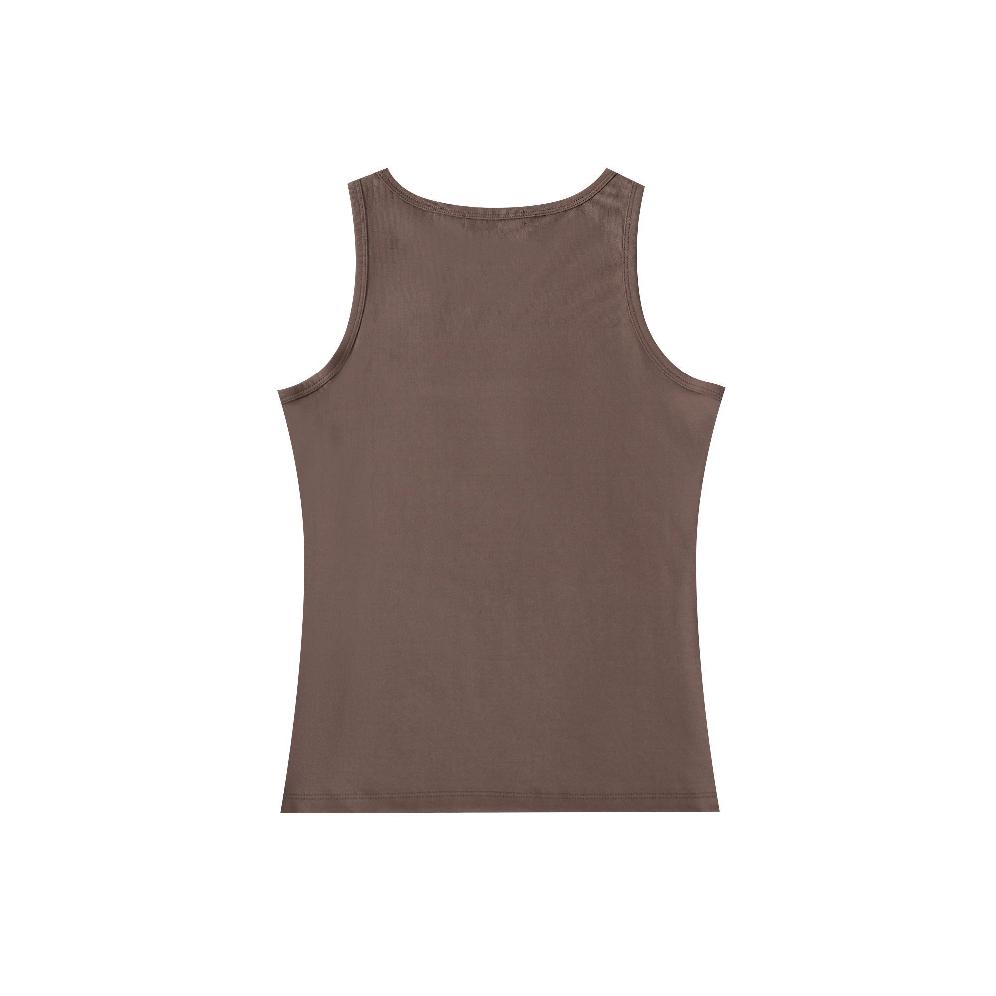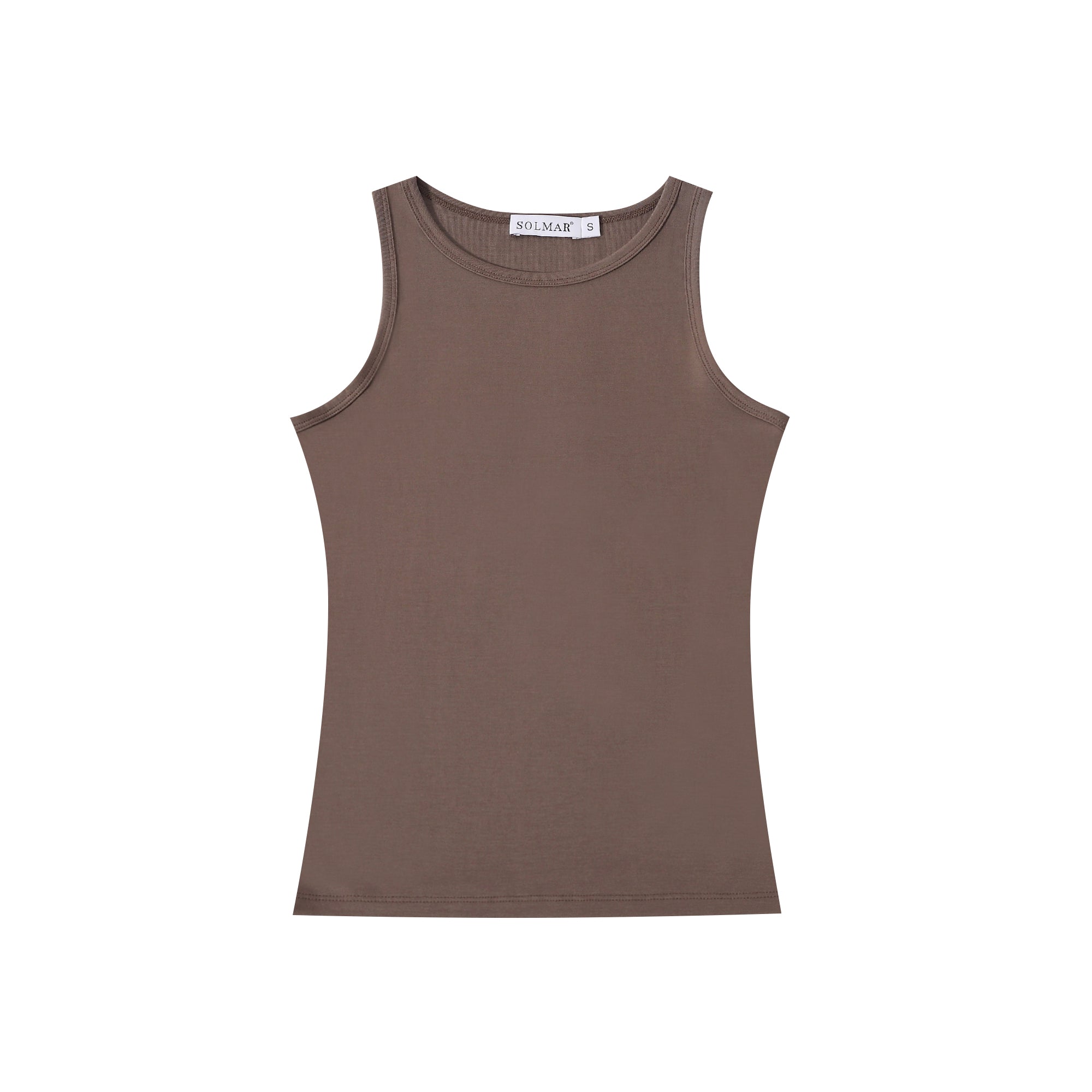A sleeveless ribbed knit top — a soft essential that evokes a sense of lightness and effortless femininity. The silky-to-the-touch fabric is breathable, gently hugs the body, and beautifully follows the silhouette while providing all-day comfort. Clean shoulder lines and a refined neckline create a polished, elegant look without unnecessary details.This solid-color women’s tank top pairs easily with denim, linen shorts, or skirts, making it a perfect choice for city outfits, vacation looks, and relaxed summer days. On cooler days, style it with a shirt, blazer, or denim jacket. A go-to top you’ll want to wear on repeat.