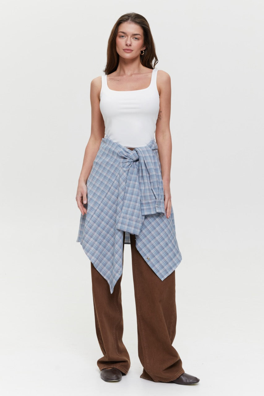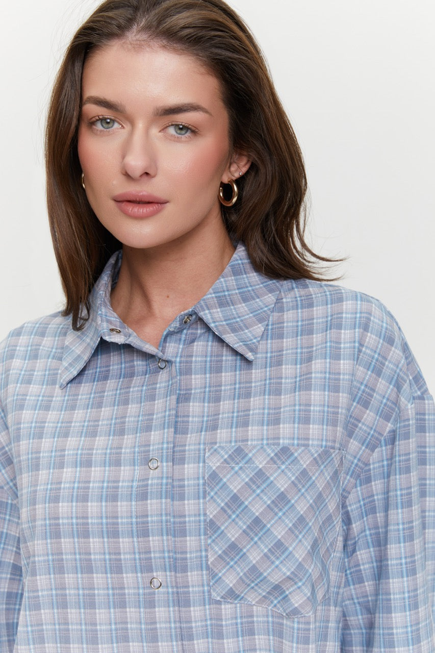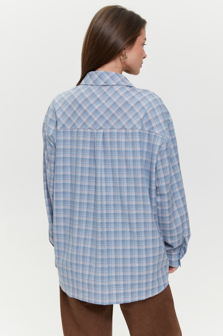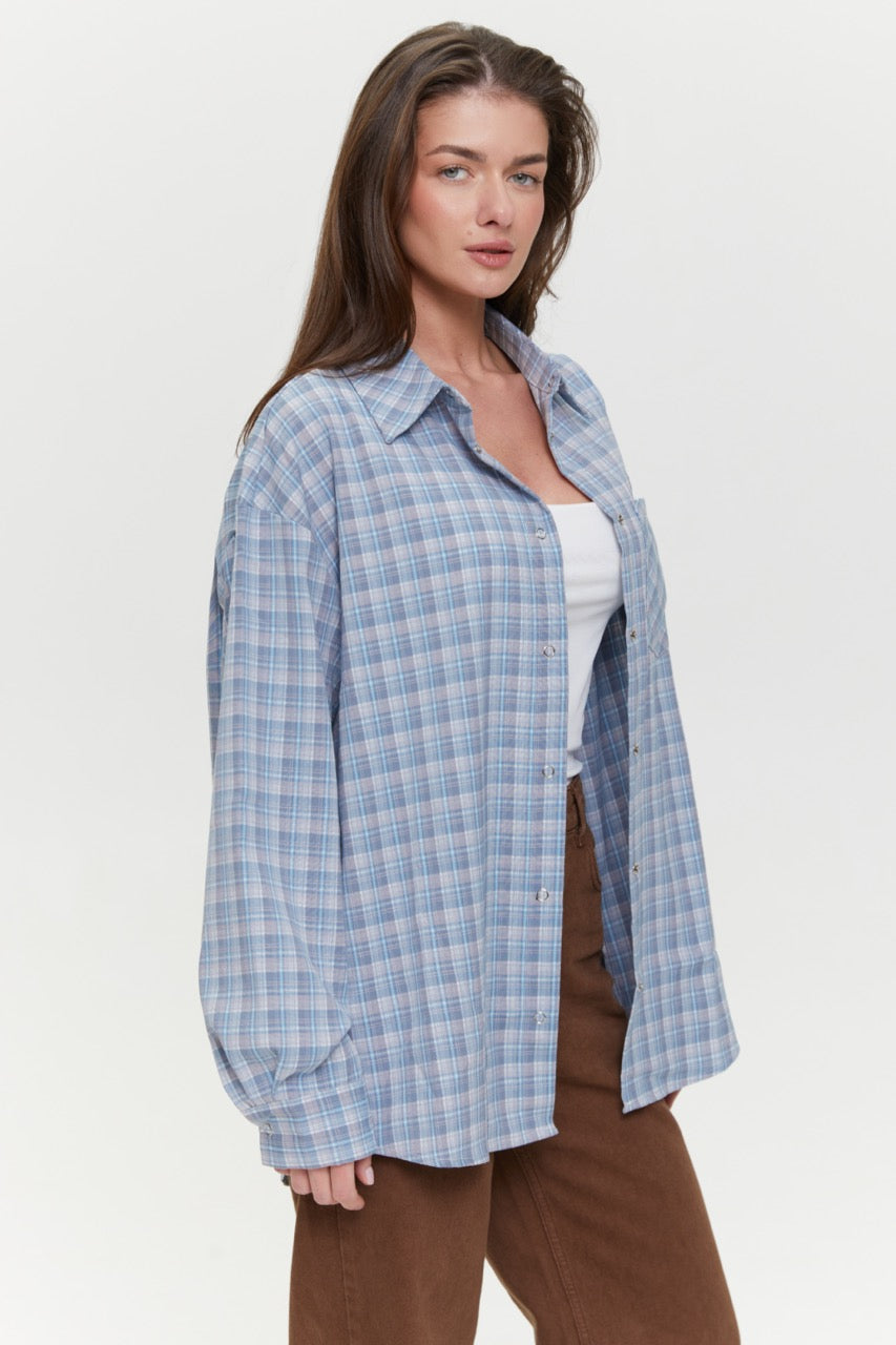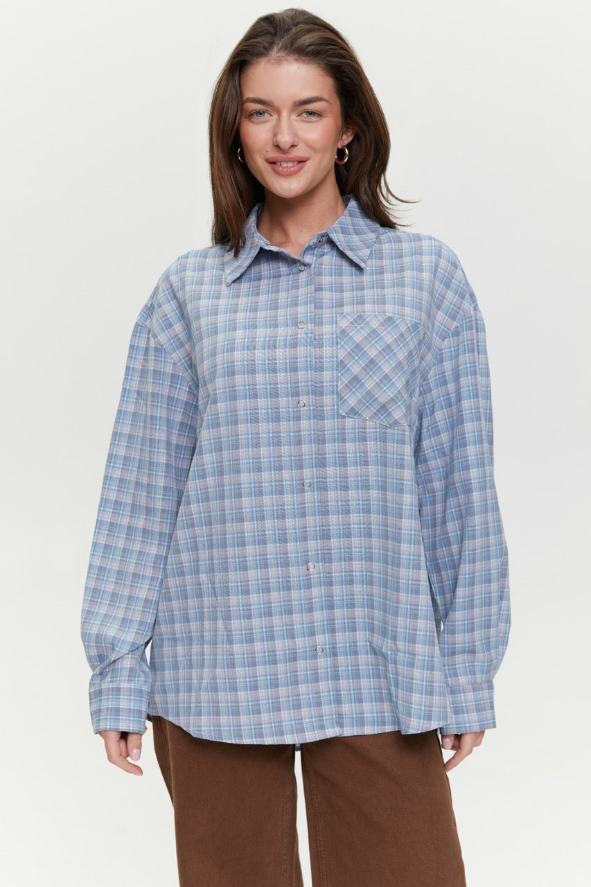 A checked shirt with a minimalist design is a simple foundation for stylish layered outfits. The loose fit ensures comfort and allows you to wear it both buttoned up or open over basic pieces. The trendy color palette pairs well with jeans, skirts, or trousers. This women’s plaid shirt works well for everyday wear, travel, city strolls, or smart casual looks. It is a practical, versatile item that fits easily into any wardrobe.