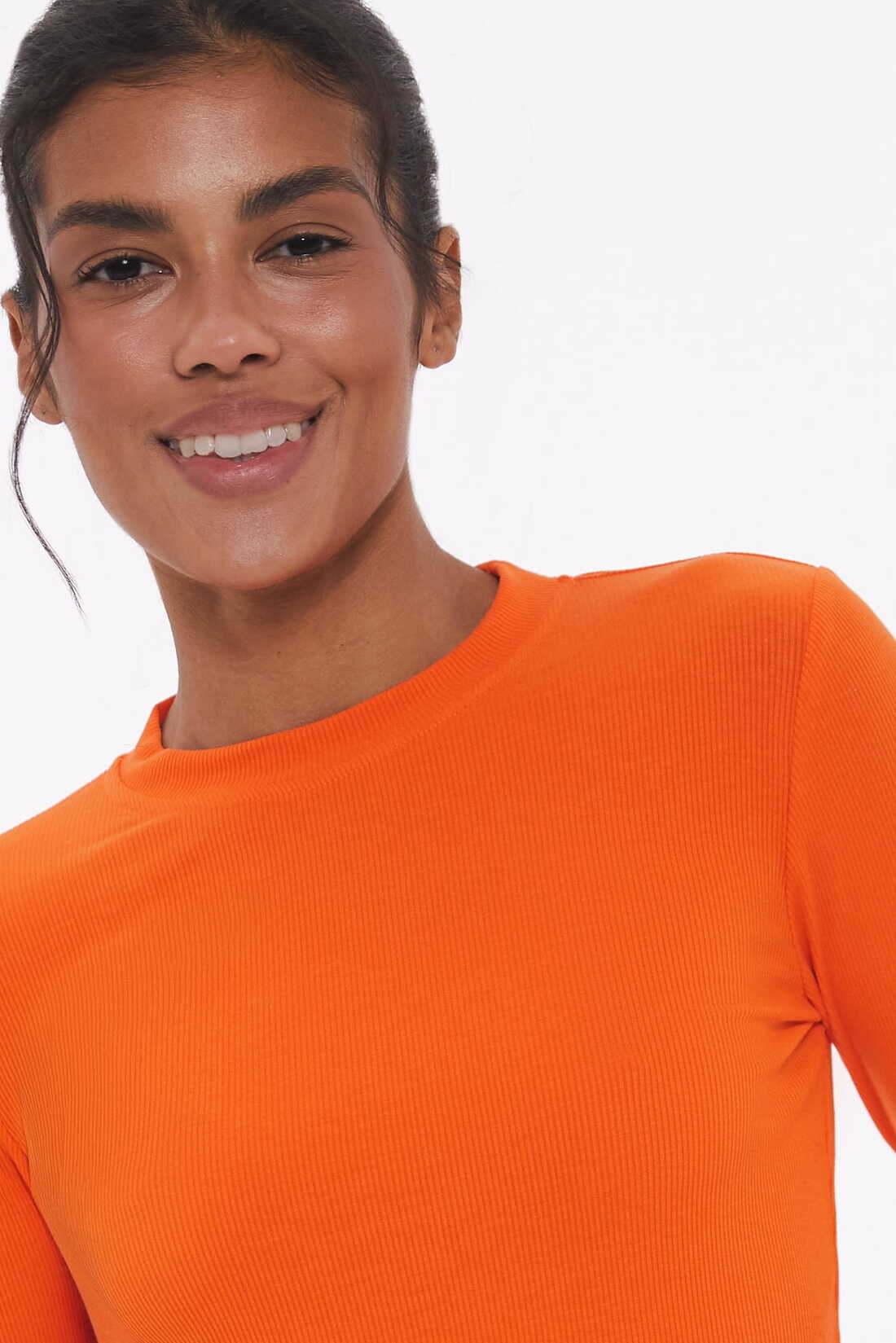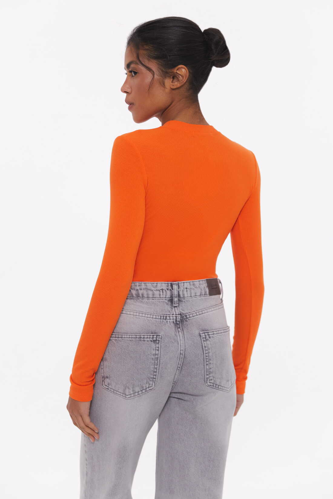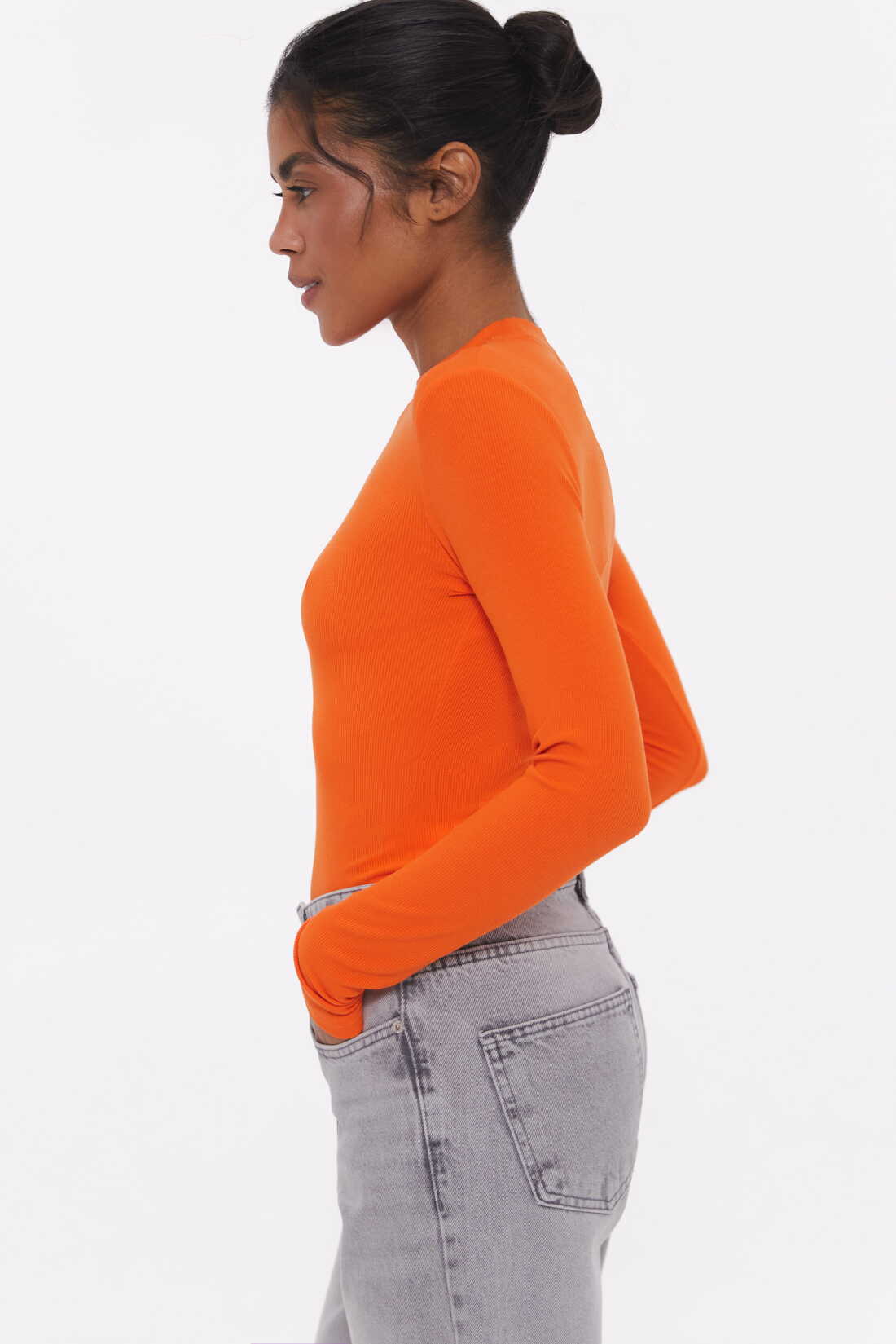 Viscose long-sleeve top in Orange is a stylish choice for creating bold and modern looks. The rich orange shade adds energy to your outfit, highlights individuality, and makes the piece a standout accent in your wardrobe. Made from soft and stretchy viscose, the long sleeve feels pleasant against the skin, offers all-day comfort, and fits the figure beautifully. The orange long-sleeve top is easy to style with jeans, skirts, tailored trousers, and suits, pairs harmoniously with white, beige, and black, and remains a versatile staple for any season.